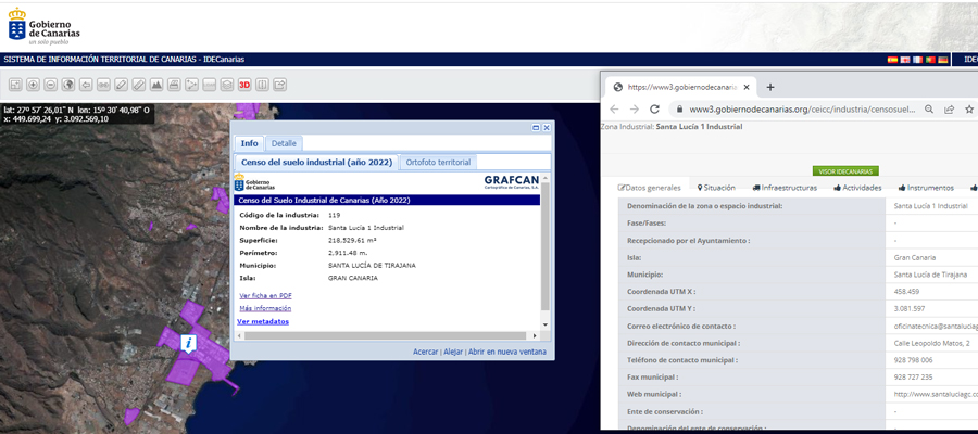 La nueva capa, que se ha incorporado al servicio WMS de Zonas Industriales, muestra las zonas industriales y puede consultar desde el visor, de IDECanarias, aunque también está publicada en la web de la Consejería en donde se muestran diferentes fichas de información asociadas a cada punto.